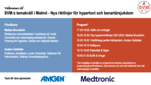 Vaskulär medicin SVM:s temakväll – Nya riktlinjer för hypertoni och benartärsjukdom Arrangerat av SVM och Mediahuset. Sändes 8/11 -23 Läs mer » 10 november 2023